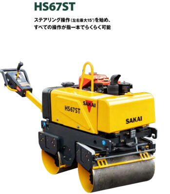 ステアリング操作により、指先ひとつで方向転換が楽に!道路の締固め地のカーブに合わせての転圧作業に威力を発揮!!大変な作業を簡単スムーズ操作で楽しいに!!